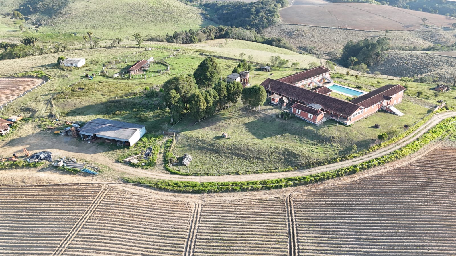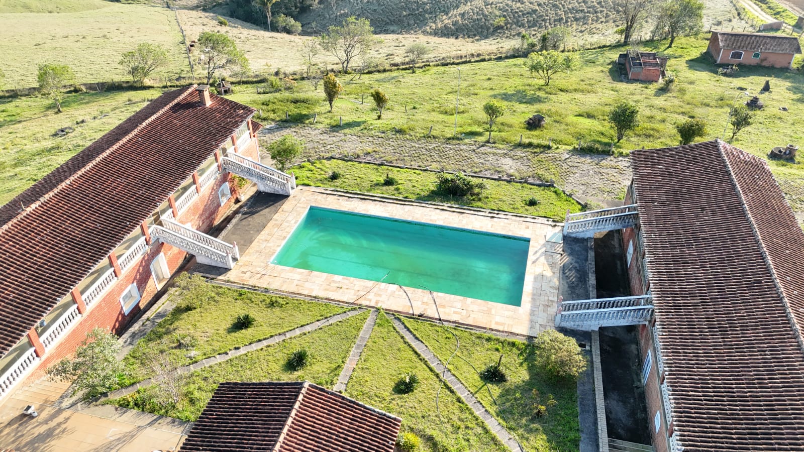 Benfeitorias: Linda Sede C/ Piscina, 2 Casas Caseiro, 2 Galpões P/Maquinários, Curral Completo, Caixa água C/ 10 Mil litros e 8 Poços