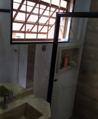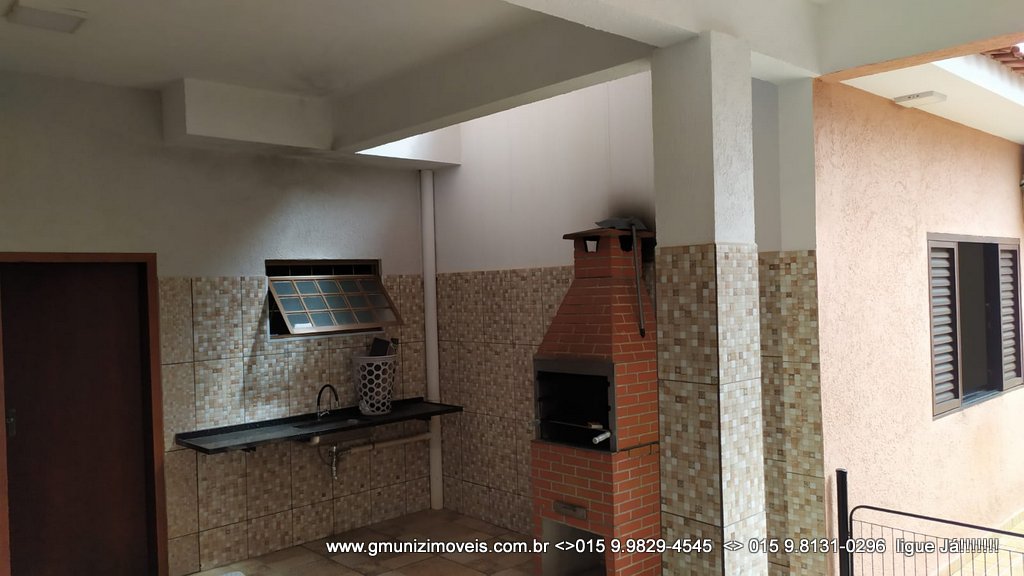 3 suítes , sendo 1 suíte independente no piso superior da área gourmet nos fundos, banheiro social, banheiro na área de serviço, cozinha grande, sala de estar grande, área gourmet com churrasqueira, garagem com portão automatizado para até 7 veículos e Dispensa .
