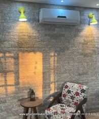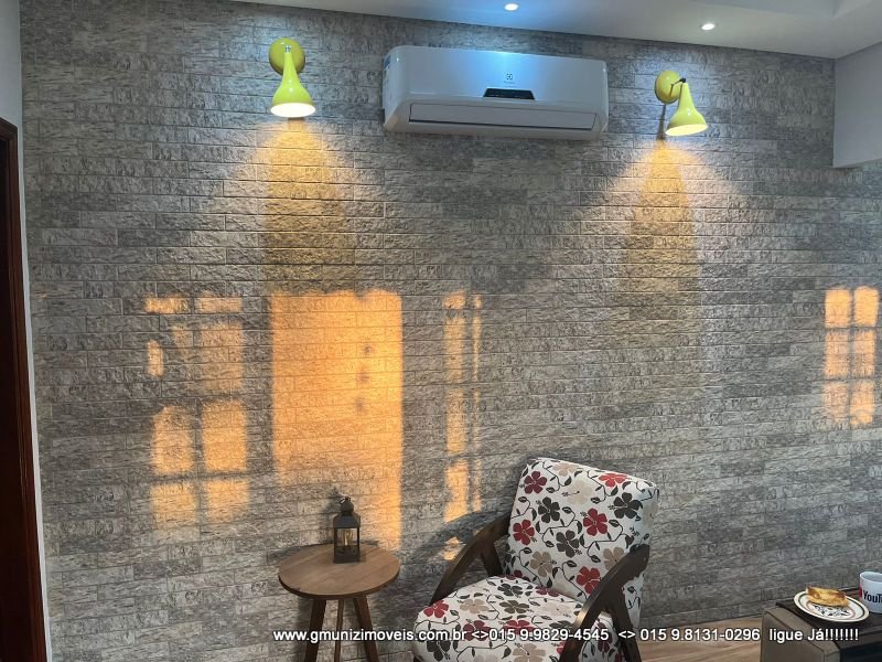 Sala: Sofá retrátil grande, rack iluminado , painel com TV de 60 polegadas e ar condicionado;