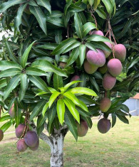 Pé de eucalipto no centro do Terreno, Pés de manga, Horta, Coqueiros, Árvores diversas,