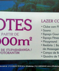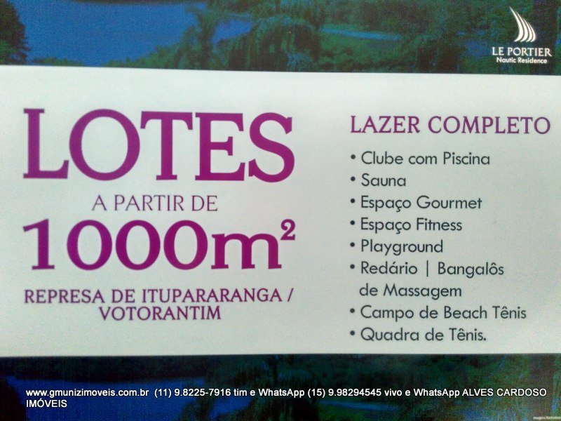 Lotes a partir de 1.000 m² as margens da represa Itupararanga em Sorocaba - Votorantin exclusivo e único com toda documentação para construir a casa dos seus sonhos , lotes a partir de 1.000 m² exclusividade Alves Cardoso - a partir de R$ 320,00 o m² vale a pena pois oferece lazer completo para toda família.